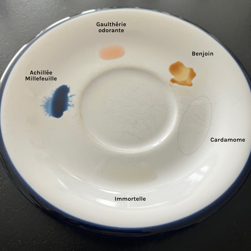 La couleur d’une huile essentielle n’est pas aléatoire : elle révèle d’où vient la plante, quand elle a été cueillie, comment elle a été distillée et même comment elle a été conservée. Un même type d’huile peut paraître plus clair ou plus foncé d’un lot à l’autre, en fonction du climat, de la variété, de la température de distillation ou de l’exposition à la lumière. Le bleu de l’huile d’Achillée Millefeuille, par exemple, vient d’une réaction naturelle qui se produit pendant la distillation. Bien que la couleur donne des indices sur les composés présents, elle ne suffit pas à elle seule à juger la qualité ; une analyse plus poussée est nécessaire pour connaître exactement ce qu’elle contient.